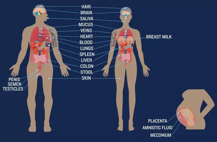 The image shows where plastics are found in human bodies. Image from the BBC.